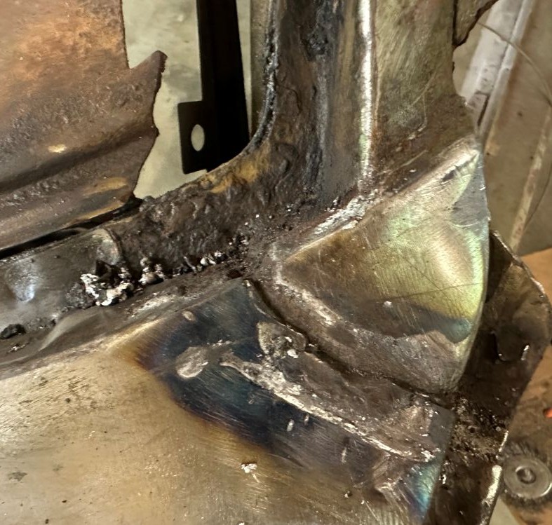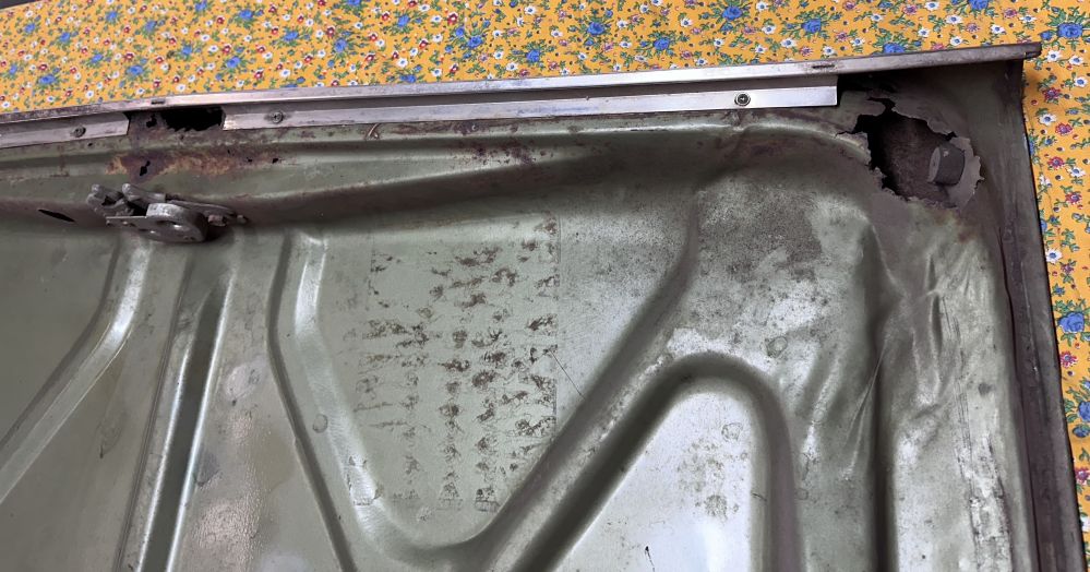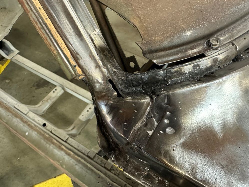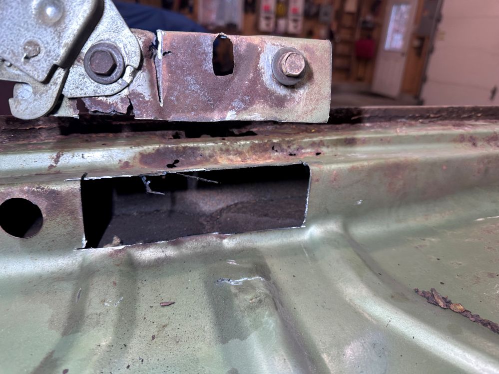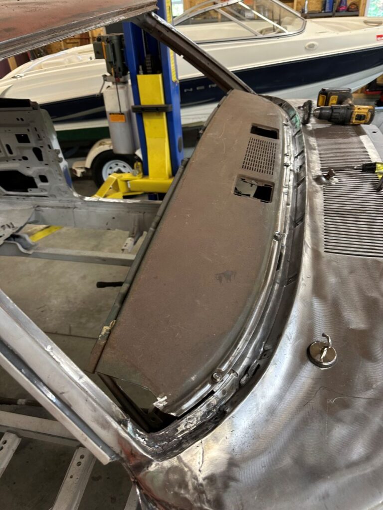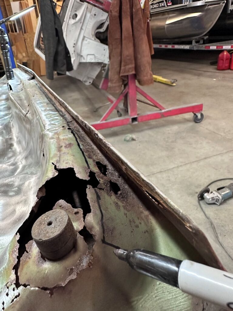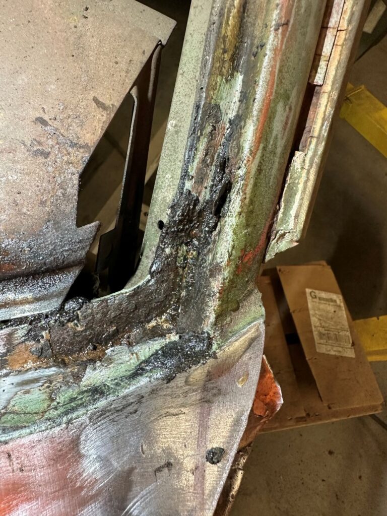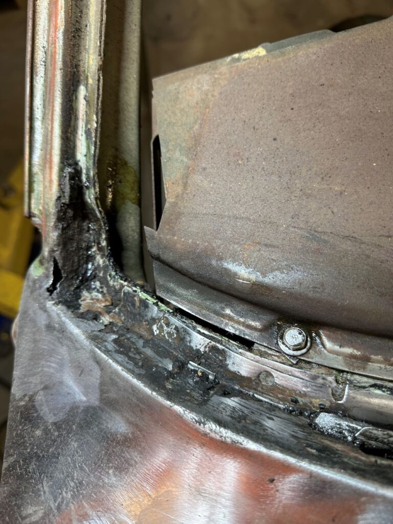 Behind the driver’s door is the front of the rear quarter panel, which was pretty beat up and rusted. So it needs to be replaced.