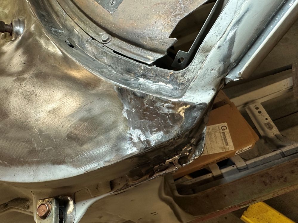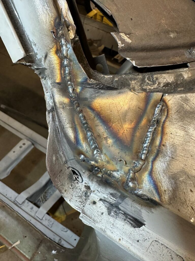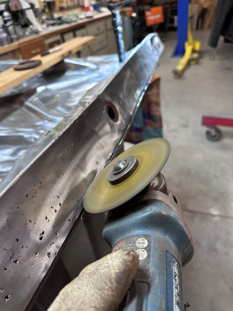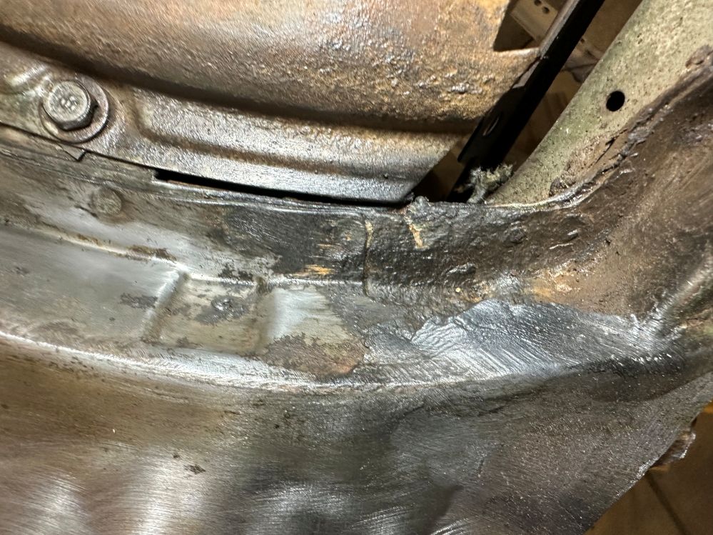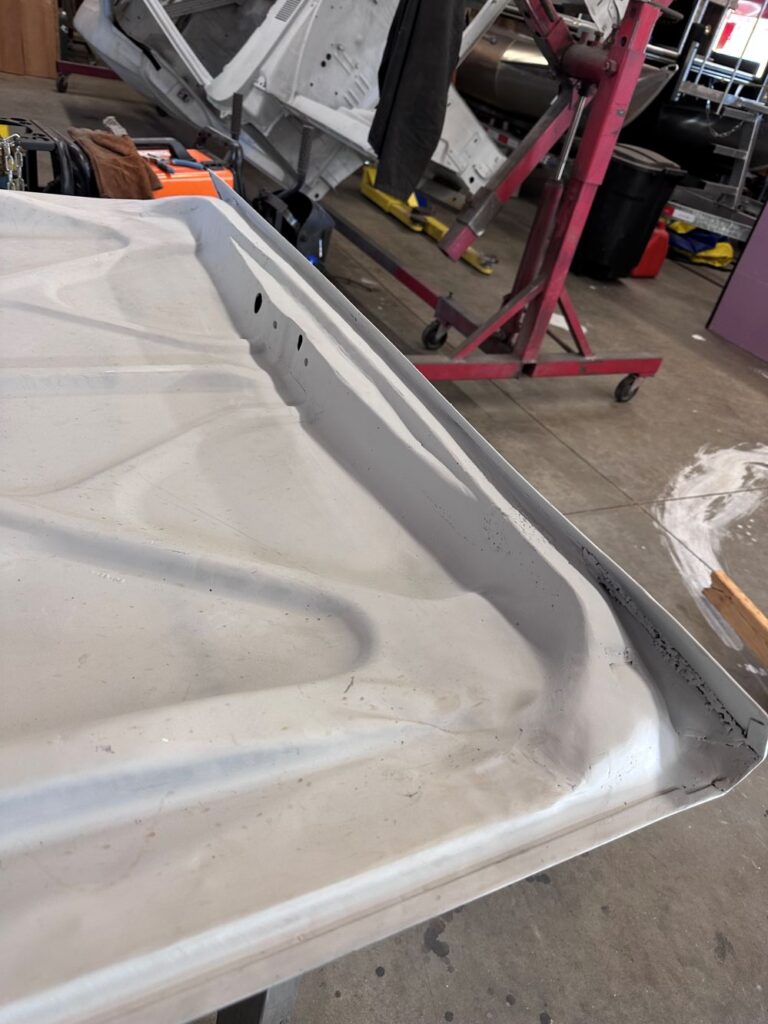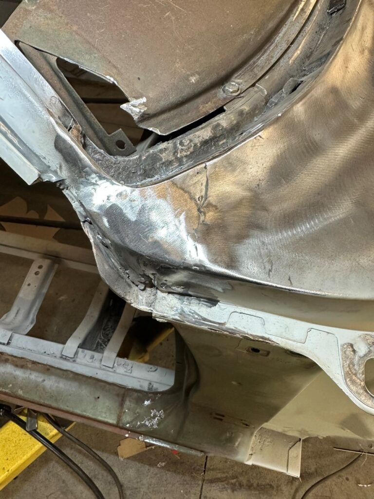 The fenders in front on both the driver’s side and the passenger’s side required a lot of work to strip and then repair the damaged pieces.