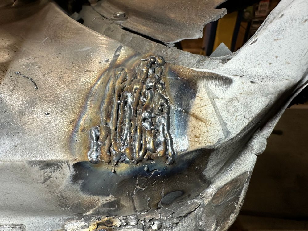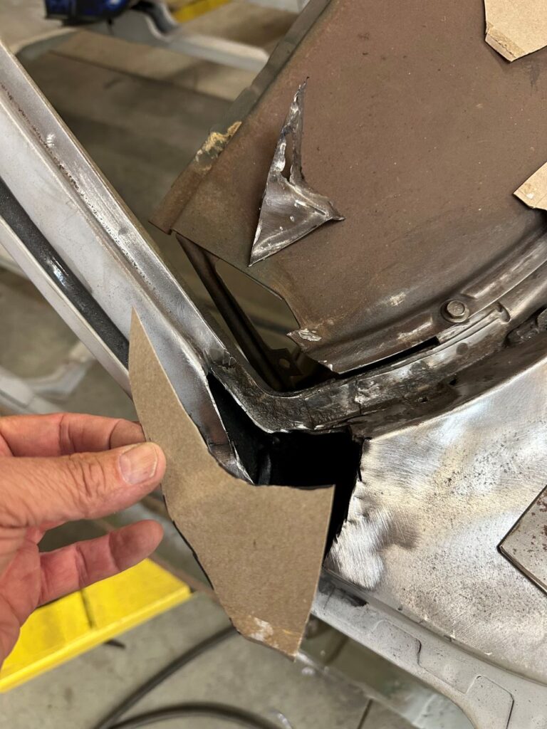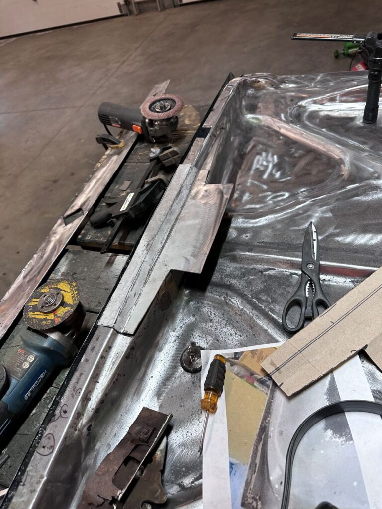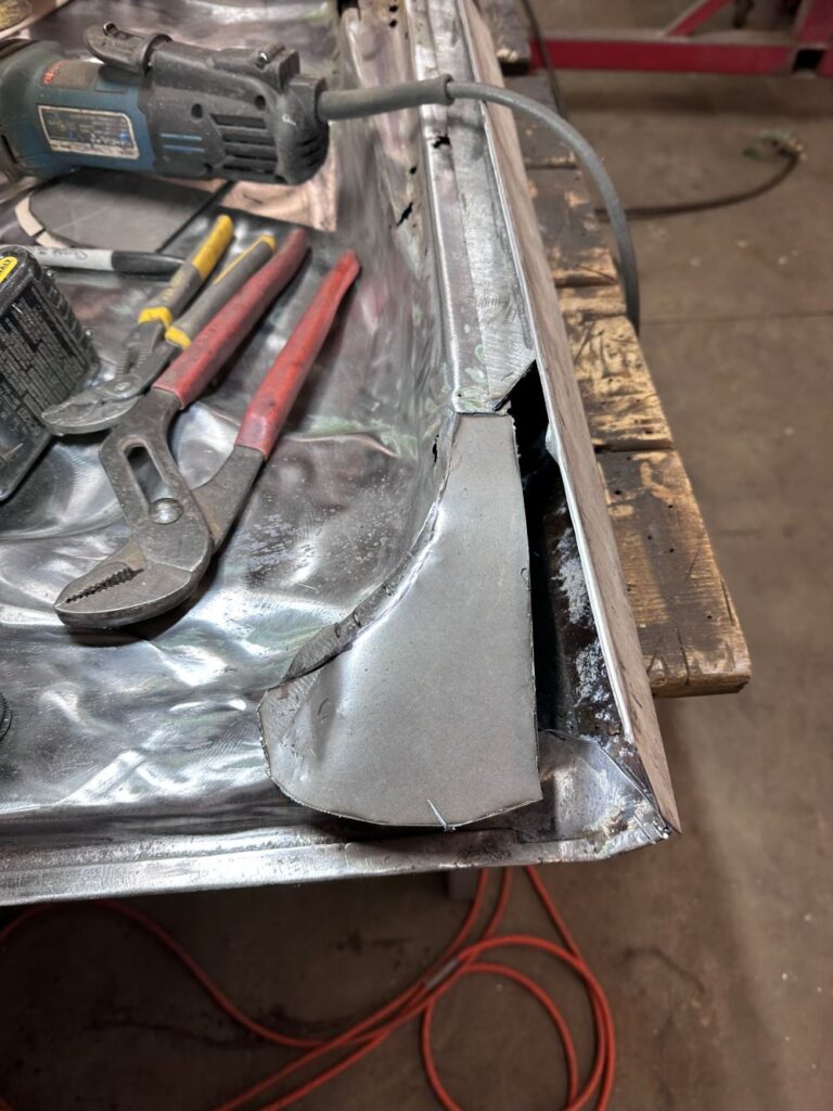 With the frame rail replaced, I turned my attention to the rusted out parts of the quarterpanels.