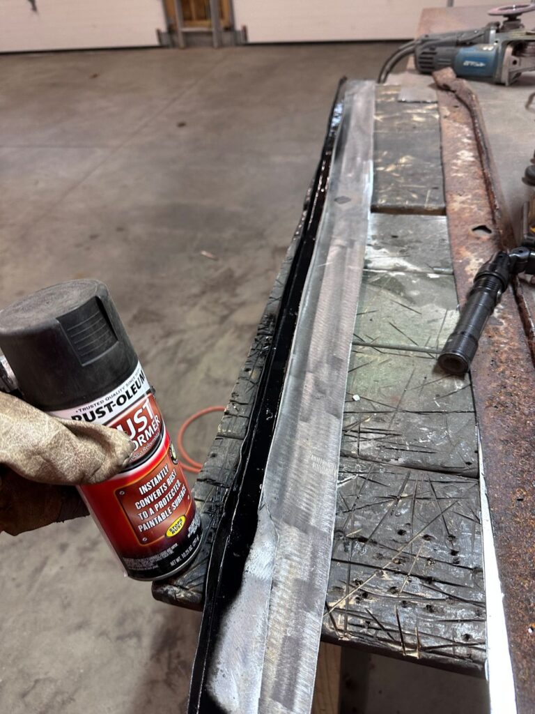 Okay, let’s bring this to a close. I welded the end piece on, buffed everything out, and then gave it a coat of epoxy primer: