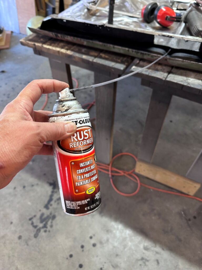 In order to make sure the bare metal didn’t start rusting, I decided to finish the rear by using some bondo where necessary and to spray epoxy primer on any exposed surfaces.