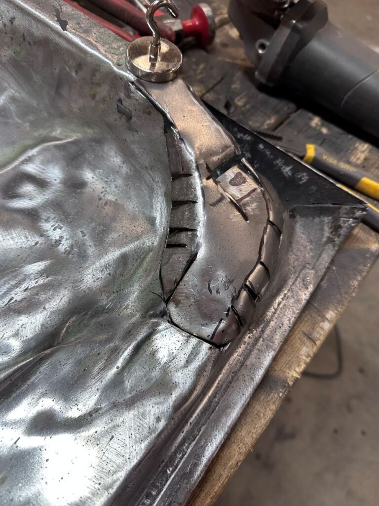 Now, the tough part — the corners. The corners are challenging because there’s just so much twisting and curving … and my fabrication skills just aren’t at that level. However, what I lack in skill, I make up for with my enthusiasm (and grinding skills).